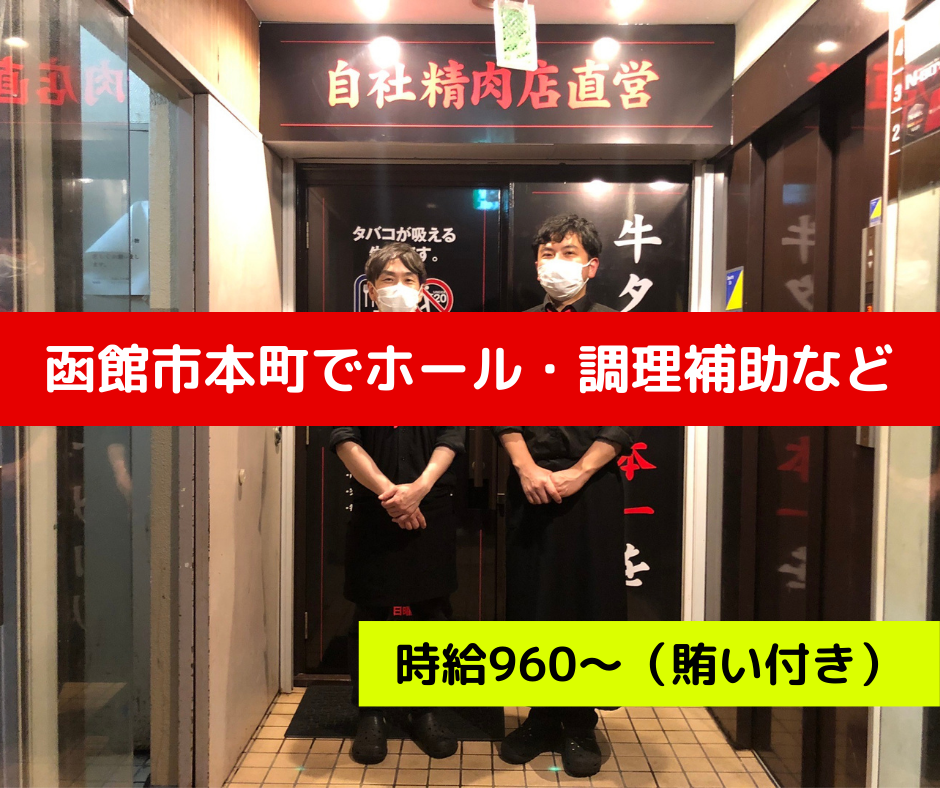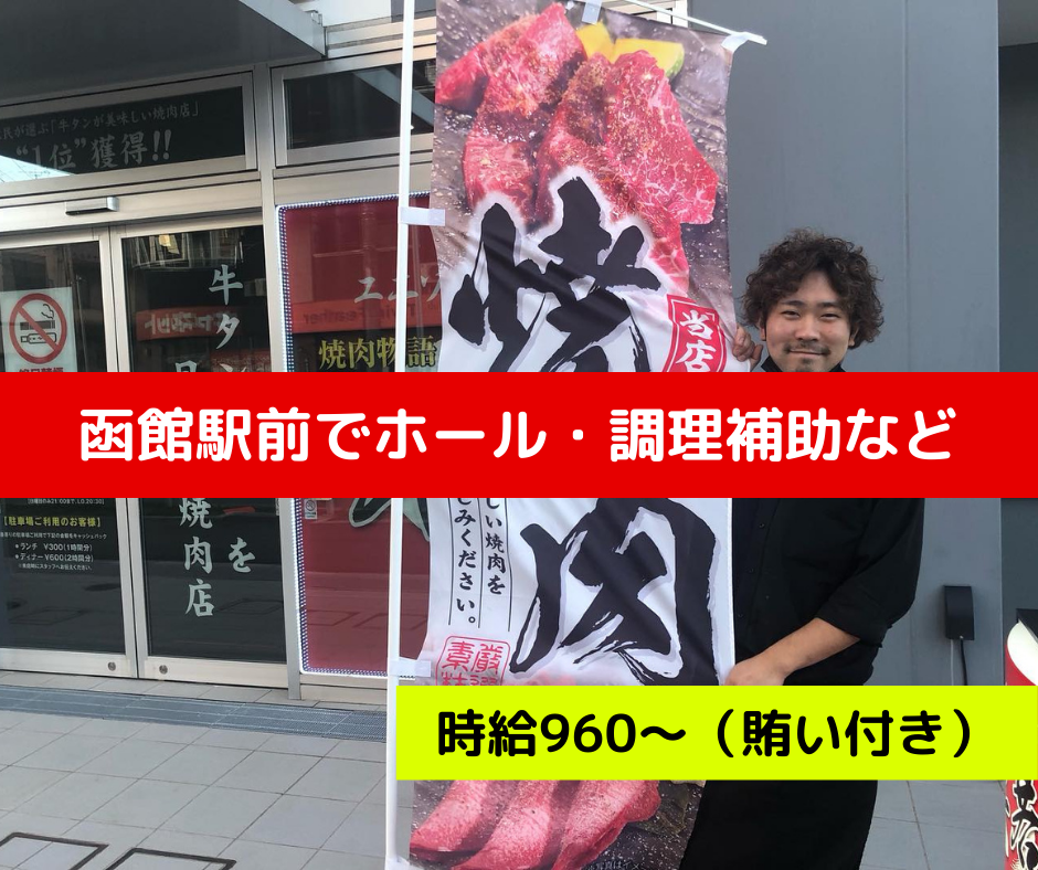 『皿洗い』『ホールスタッフ』『調理補助』【焼肉物語牛若 ユニゾ函館駅前店】
